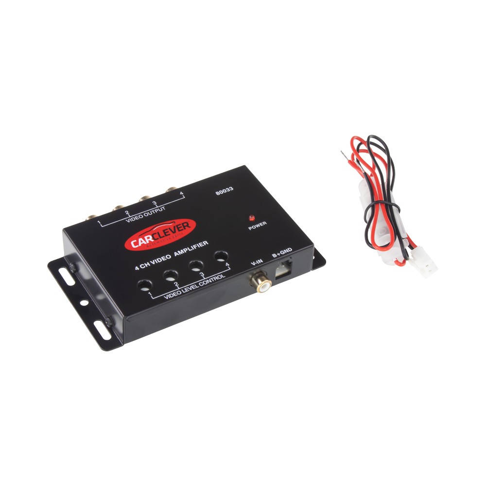 12V rozbočovač videosignálu – aktivní nastavitelný (1x vstup / 4x výstup):
