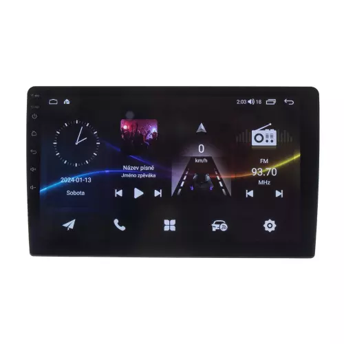 • LCD displej multimediálního 2DIN autorádia s 10,1" LCD, OS Android, WI-FI, GPS, CarPlay, Bluetooth, 2x USB, 4G